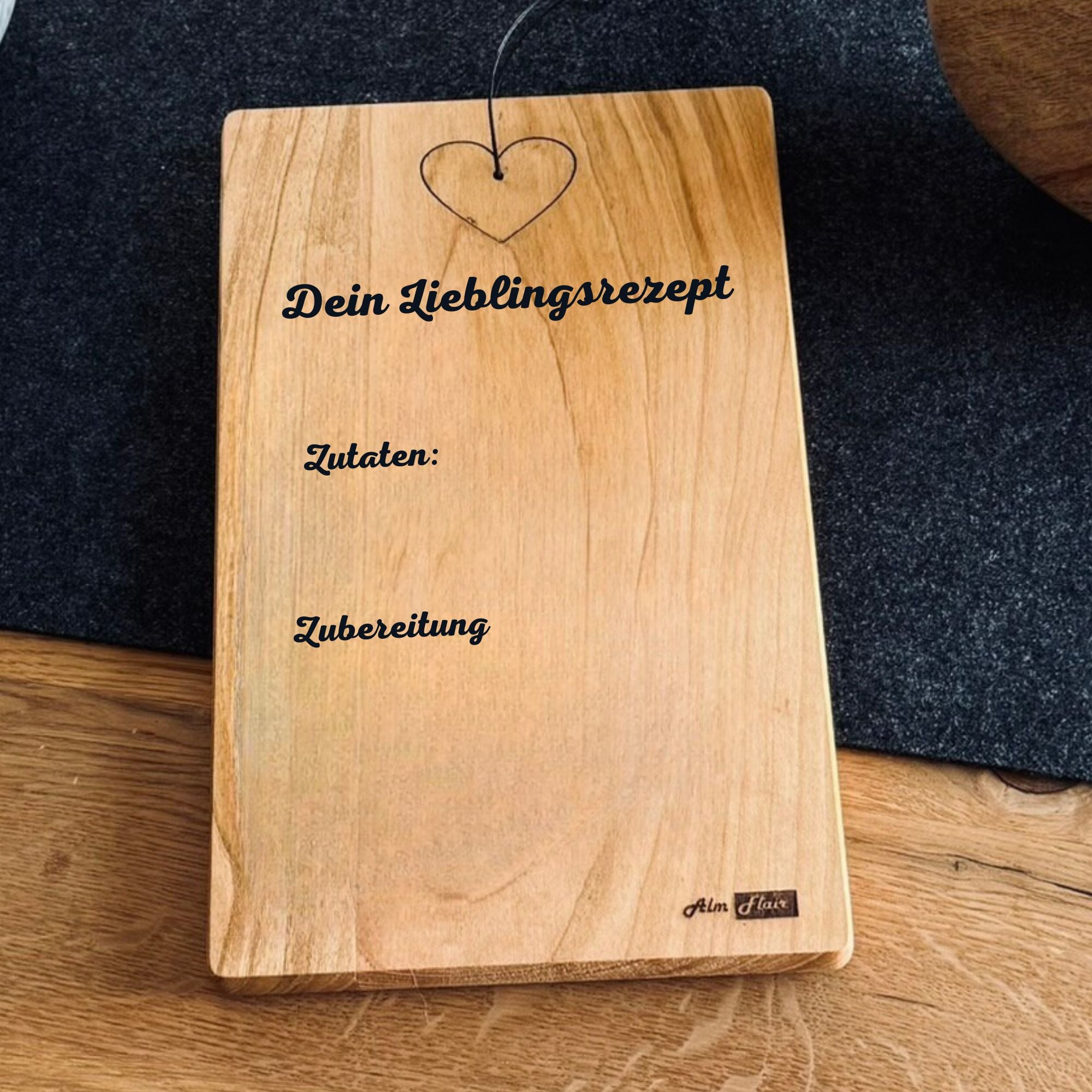 Holzbrett mit eingelaserter Rezeptgravur – charmant & praktisch zugleich