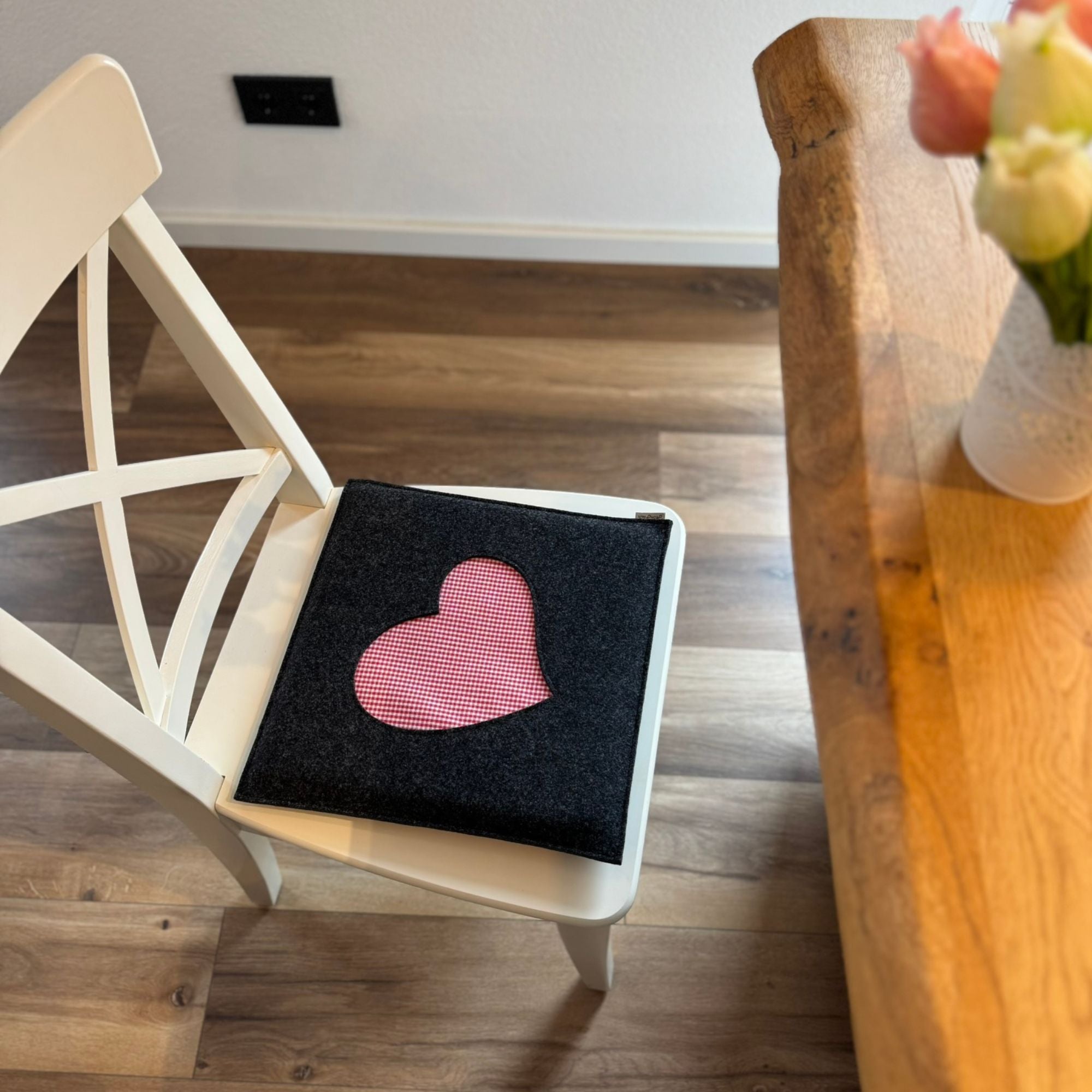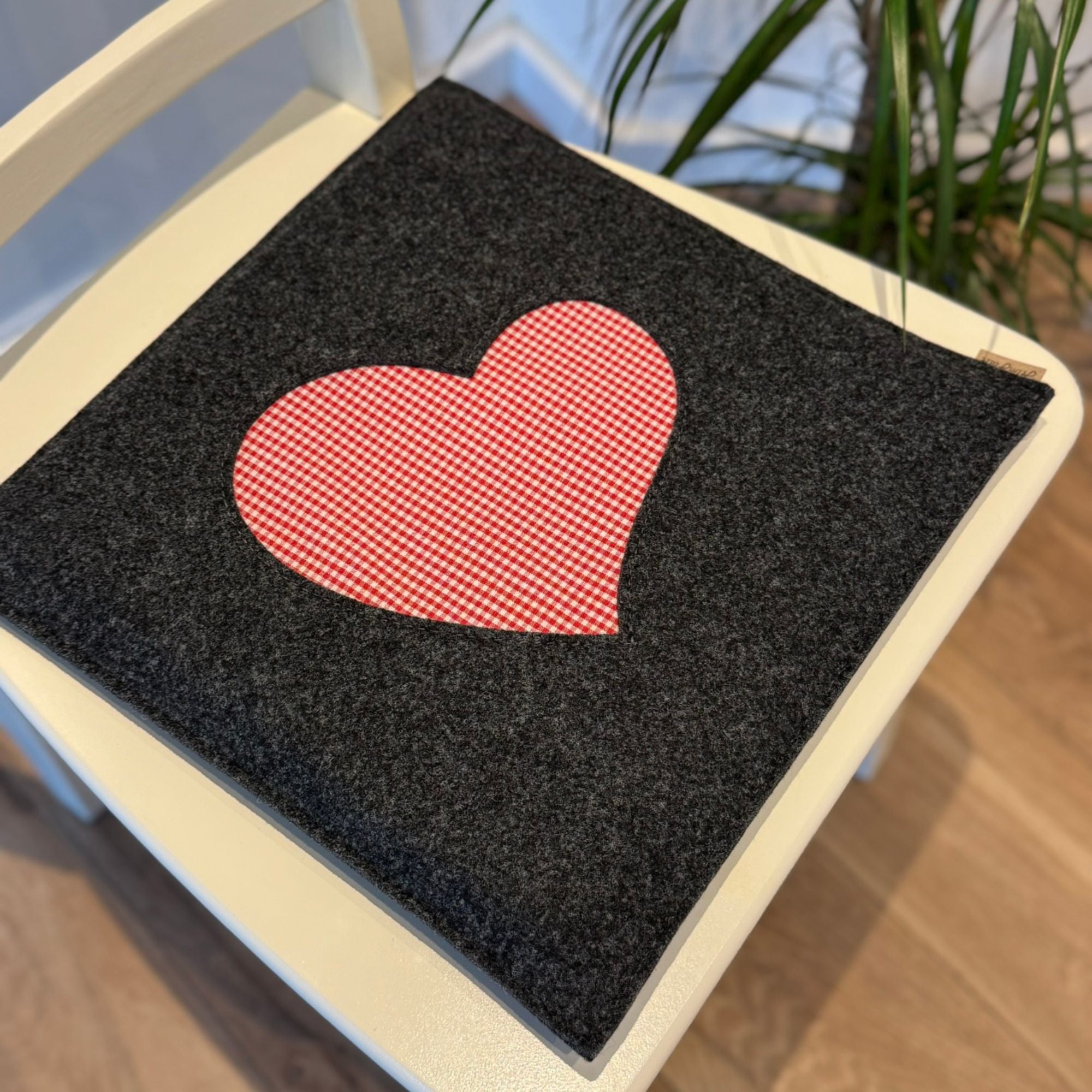 Dieses gemütliche Sitzkissen aus hochwertigem Filz vereint Komfort und Stil. Das liebevoll gestaltete Herzmotiv im rot-weißen Karomuster verleiht ihm eine charmante, ländliche Note. Perfekt für Stühle, Bänke oder als dekoratives Highlight – ein echter Blickfang für Ihr Zuhause!